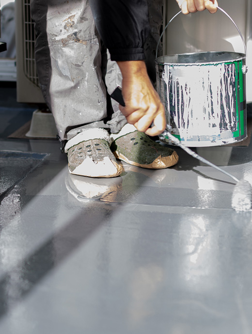 液状のウレタン樹脂を塗り重ね、継ぎ目のない防水層を形成します。柔軟性・密着性に優れ、改修工事にも幅広く対応できる工法です。